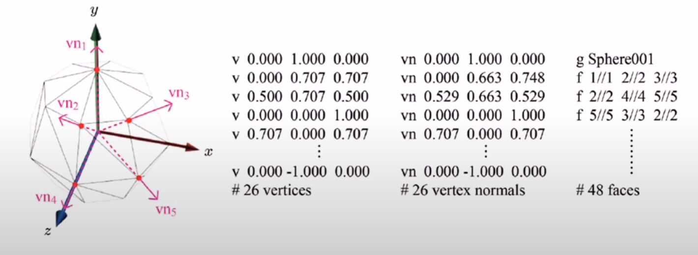 - vn : vertex normals (unit vector) 26개 (동일한 normals 이 나오면 한개만 저장된다.)