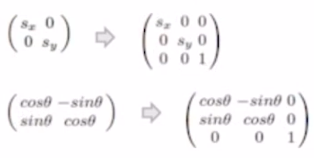 Scaling, Roation 의 2x2 행렬들은 3X3으로 표현 못하나요