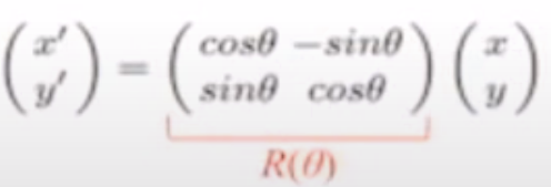 - 회전각 Θ 만큼 반시계 방향으로 회전시키는 벡터는 아래와 같다.