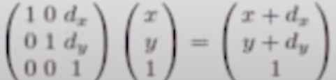 ex) (2,3)만큼 translate 시키는 동차좌표는 (2,3,1) (4,6,2) (6,9,3) 이 있다.