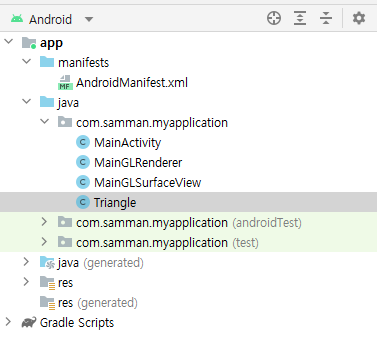 GLES20.glDrawArrays(GLES20.GL_TRIANGLES, 0, vertextCount); // 그리기
