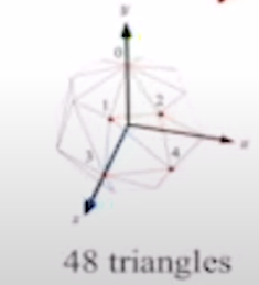 구 mesh 가 정의되어 있다고 보자. 구는 48 개의 삼각형으로 만들어졌다.
