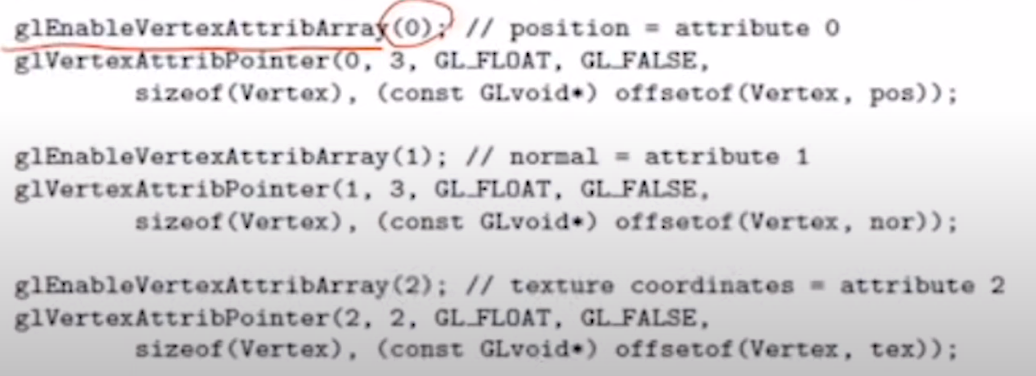 pos, nor, tex는 어디서 시작한다. 라는것을 쉐이더에게 알려줘야 한다.